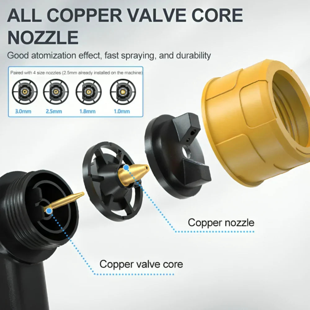 Fed up with the constant struggles of traditional painting methods?Say goodbye to tangled cords and messy brushes! Our Cordless Paint Sprayer frees you from these annoyances and saves you thousands on professional paint jobs. Enjoy the consistency of even coverage, strong adhesion, and unmatched versatility with every application.