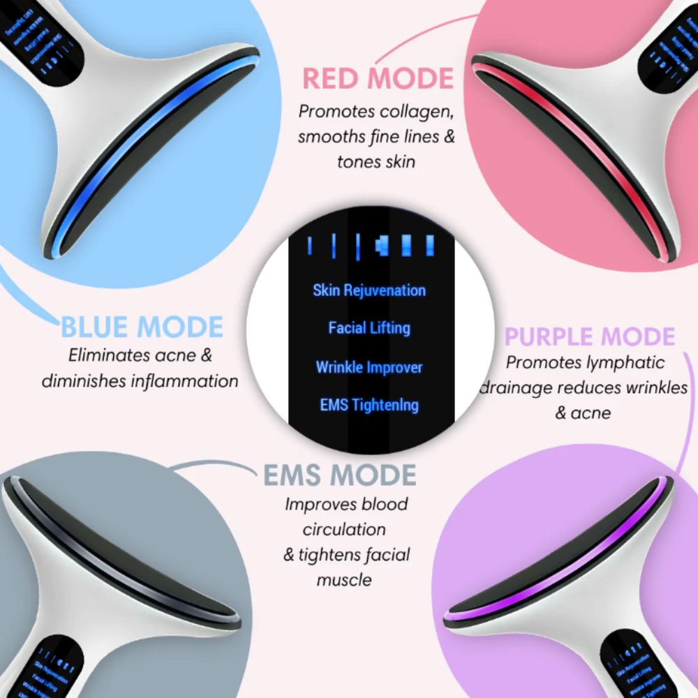 SkinTight Pro Sculptor your new go-to device for achieving radiant, youthful skin. This innovative device offers four essential functions - deep cleansing, skin relaxation, product absorption, and targeted heat therapy. It gently warms your skin, enhancing the effectiveness of your skincare products and leaving your complexion smoother and more vibrant.
